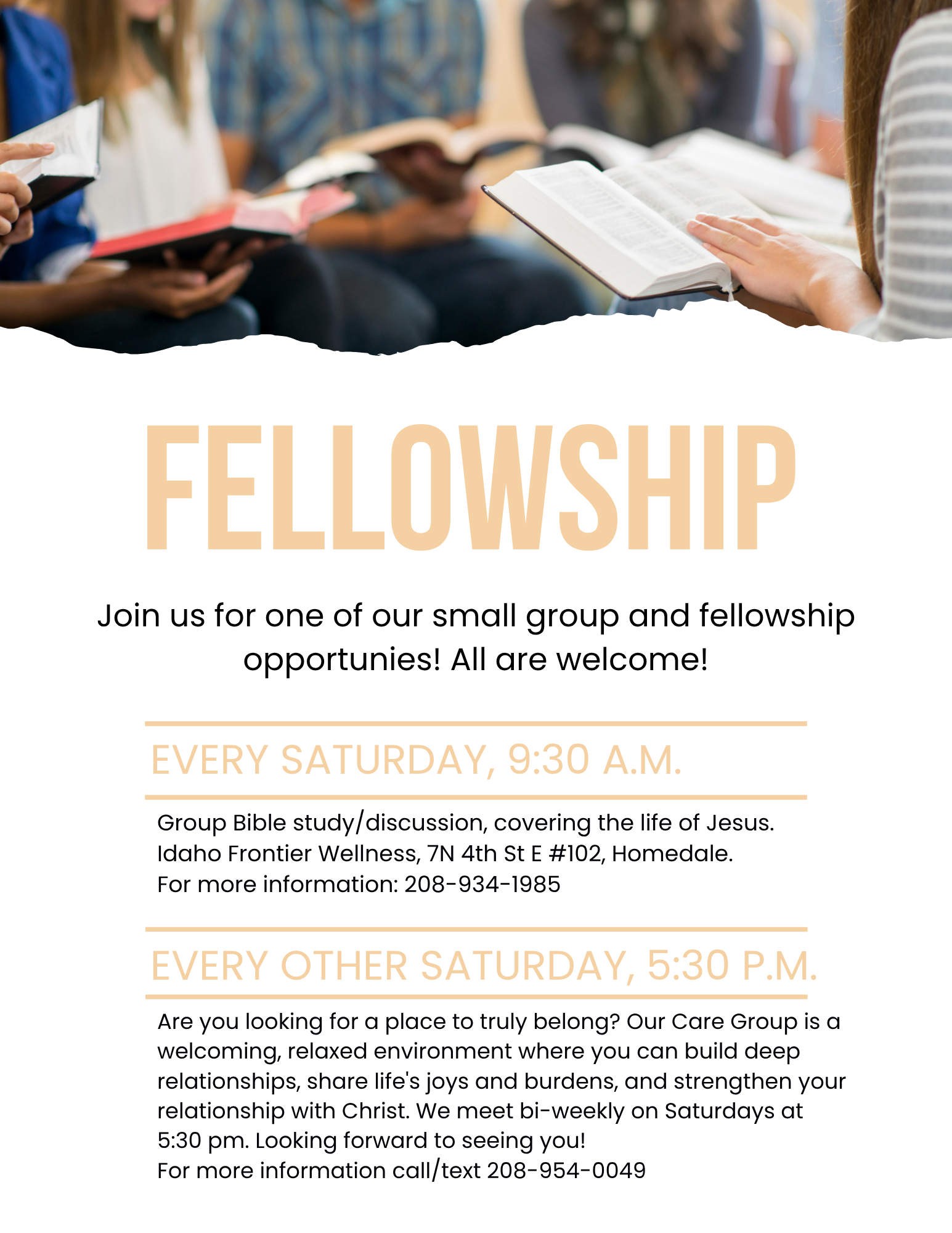 We're starting a casual, small group that meets Thursday evenings at 6:30, beginning in December.